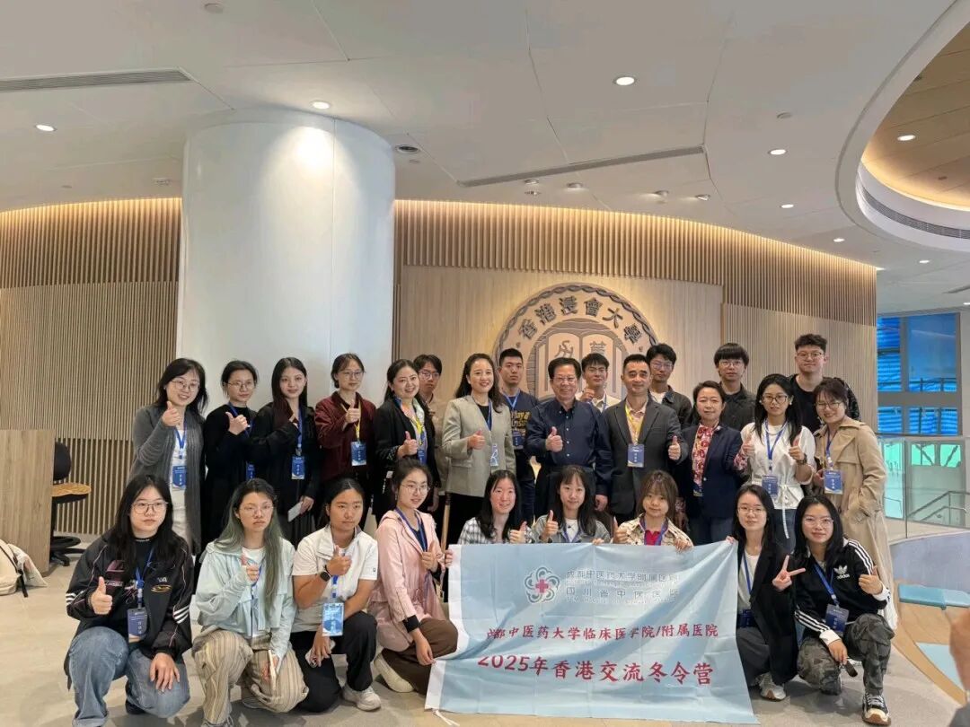 To implement the content and requirements of the Sichuan-Hong Kong cooperation mechanism outlined by the provincial party committee and government, strengthen exchanges and cooperation between our hospital and the University of Hong Kong, the Chinese University of Hong Kong, Hong Kong Baptist University, and Tung Wah Group of Hospitals, and broaden students' international perspectives, our hospital organized the 2025 Winter Program for Hong Kong Exchange from November 3 to 7. Led by Zhang Ya, Member of the Party Standing Committee and Head of the Publicity and United Front Work Department of our hospital, a delegation of 26 faculty and students participated in the event. The delegation included representatives from the Student Affairs Office, the Student Party General Branch, the Internal Medicine Department of Traditional Chinese Medicine, the Teaching Department, and the International Exchange and Cooperation Department (Hong Kong, Macao, and Taiwan Office).