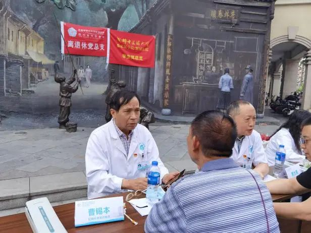 此次活动包含中医义诊、艾灸推拿、中医心理咨询、中医养身及文化宣传等。来自我院肛肠科、消化内科、呼吸内科以及全科医学科的4位退休专家在现场为社区基层群众把脉问诊、答疑解惑,为青年志愿者传道授业、指导实践。
