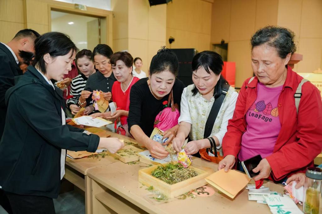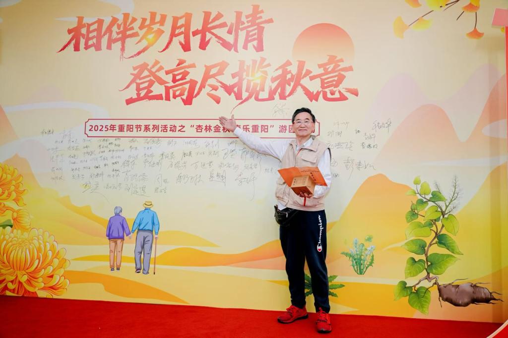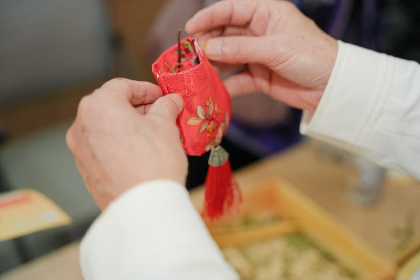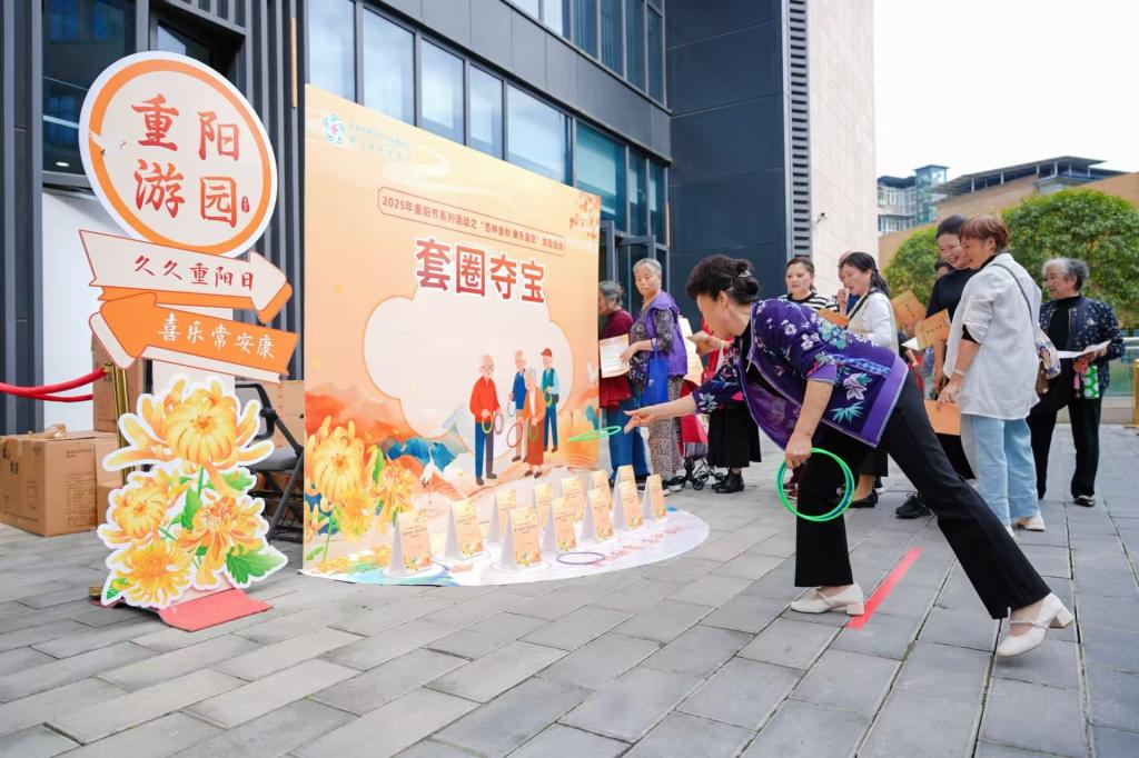 在“杏林金秋·康乐重阳”游园活动环节,现场设置了茱萸香囊DIY、智慧拼图、登高打卡等多个融合了重阳节俗与中医药文化的互动区域。老同志们或亲手缝制寓意健康的香囊,或三五成群协作拼图,或在打卡点合影留念,在轻松愉快的氛围中畅叙情谊,感受传统文化的独特魅力。