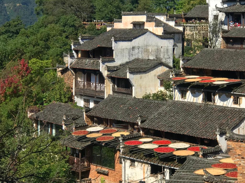 婺源篁岭晒秋是江西婺源篁岭古村独特的农俗景观,村民在秋分时节晾晒农作物(如辣椒、玉米、皇菊等),形成五彩斑斓的“大地艺术”,与徽派建筑相映成趣,兼具实用性和观赏性。