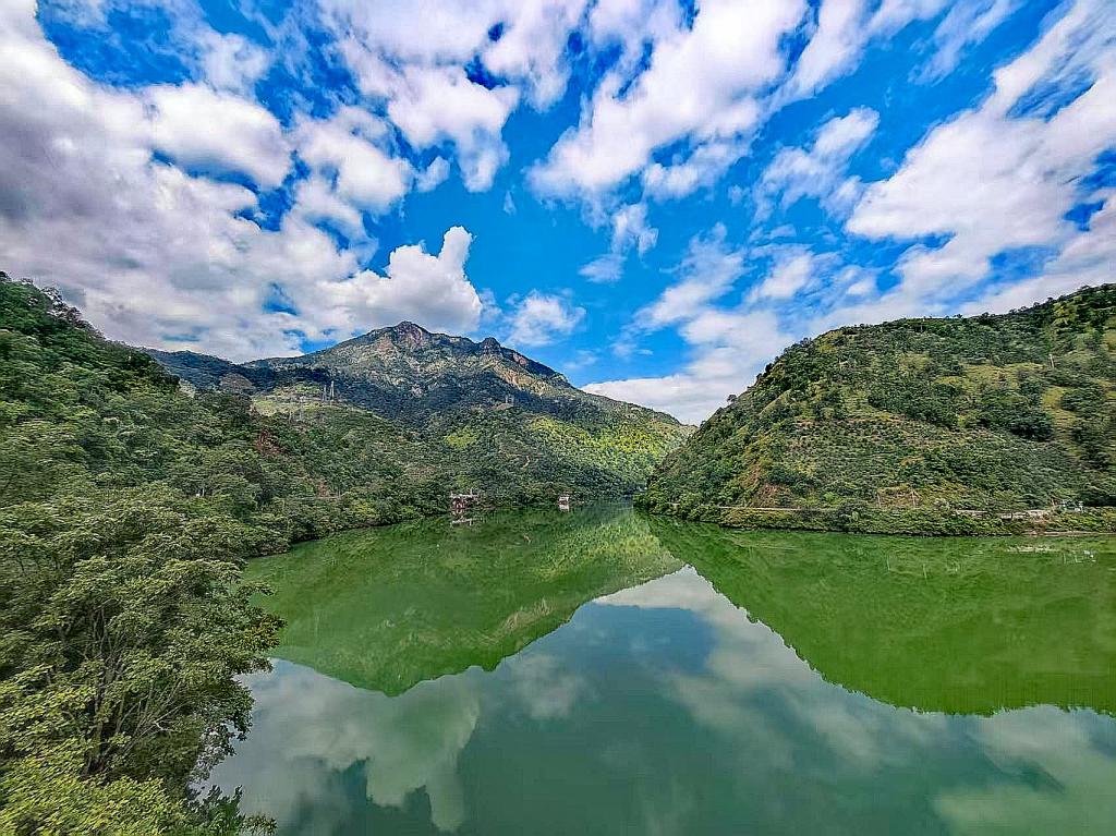 位于四川洪雅瓦屋山下的雅女湖宛如一面巨大的镜子,倒映着四周的山峦与天空。湖面氤氲着一层薄薄的雾气,似轻纱般缥缈,为湖水增添了几分神秘色彩。让人仿佛置身于仙境之中。站在雅女湖边,使我想起了一位大师的话:山不在高,有仙则灵!这就是大美四川仙景!
