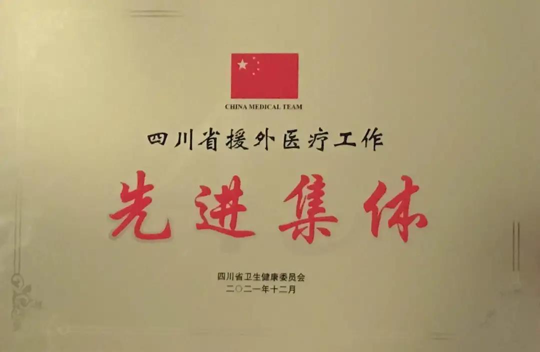 在激昂的乐曲声中,敬静、何延政向援外医疗工作先进集体和先进个人代表颁发荣誉证书。我院高培阳副院长代表医院上台领奖。我院心血管二科副主任医师、援安哥拉医疗队第四队党支部书记姜莉被评为四川省援外医疗工作先进个人。