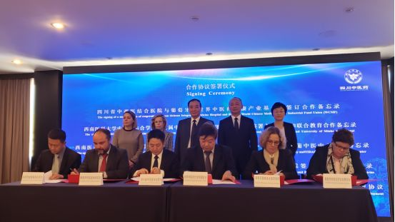 会议期间,在副主席王正荣、田兴军、葡萄牙前卫生部部长玛利亚.德.贝伦、中国驻葡萄牙大使馆韩晓燕参赞等领导的共同见证下,谢春光与葡萄牙里斯本大学药学院马蒂尔德·德卡斯特罗院长、及葡萄牙埃诺法药业发展协会奥尔加·席尔瓦秘书长共同签署了《学术交流协议》,三方正式建立友好合作关系,并一致同意积极推进在传统医药的医疗、教育、科研及人才交流等方面务实合作。
