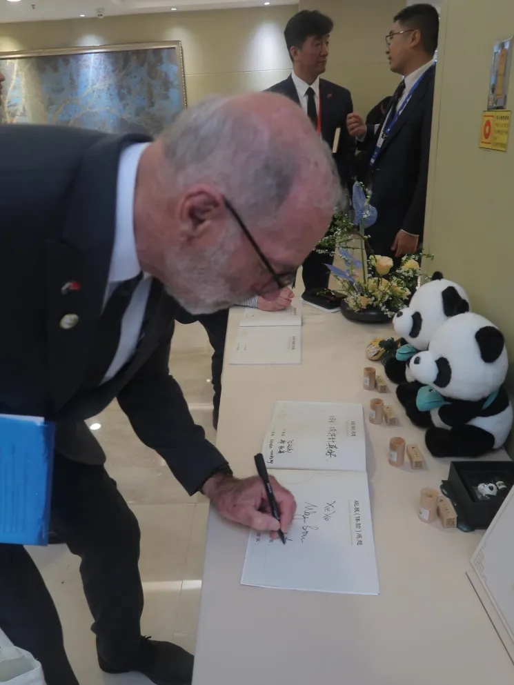 ▲新西兰奥克兰市长韦恩·布朗在留言簿上称赞杵针疗法