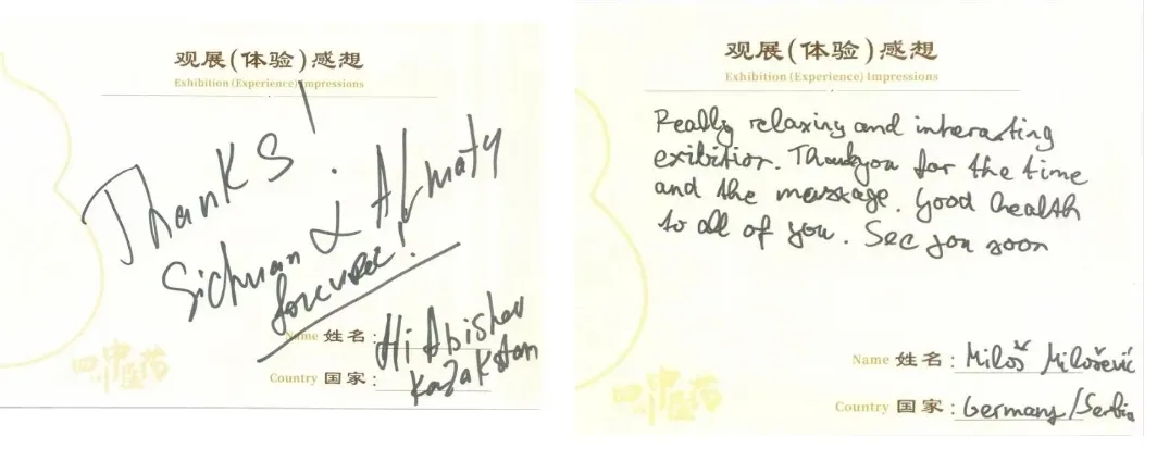 在亲身体验中医药的神奇疗效后,他们纷纷在签到册上留下真实感受,在打卡墙前合影留念。这一互动体验不仅加深了外宾对中医药文化的理解,同时为四川中医药国际交流与合作搭建了桥梁。