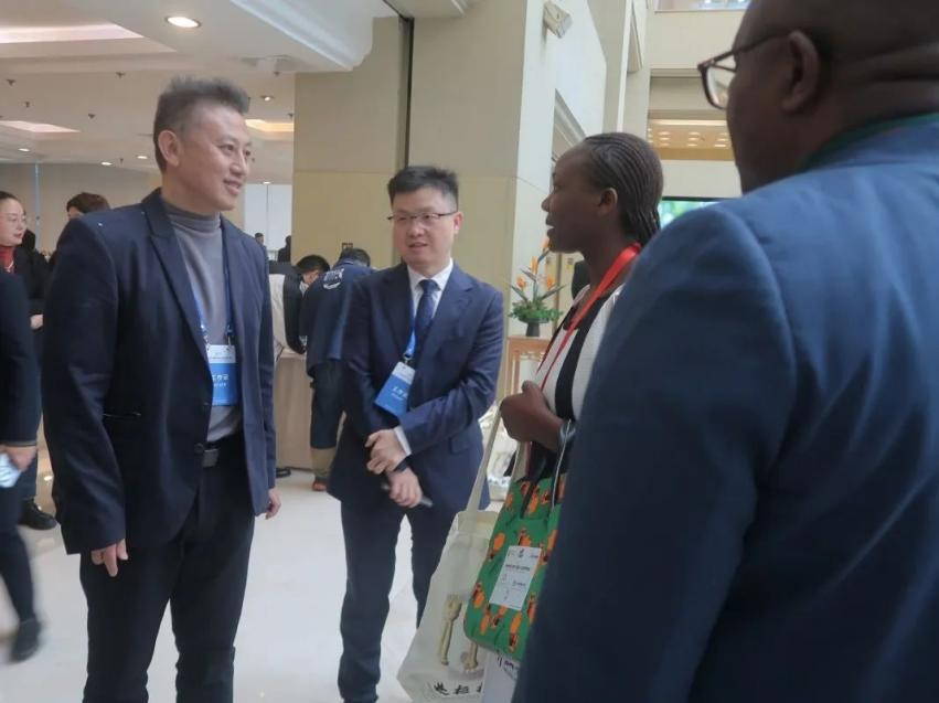 ▲我院国际交流与合作部部长万鹏为各国领事讲解院内制剂