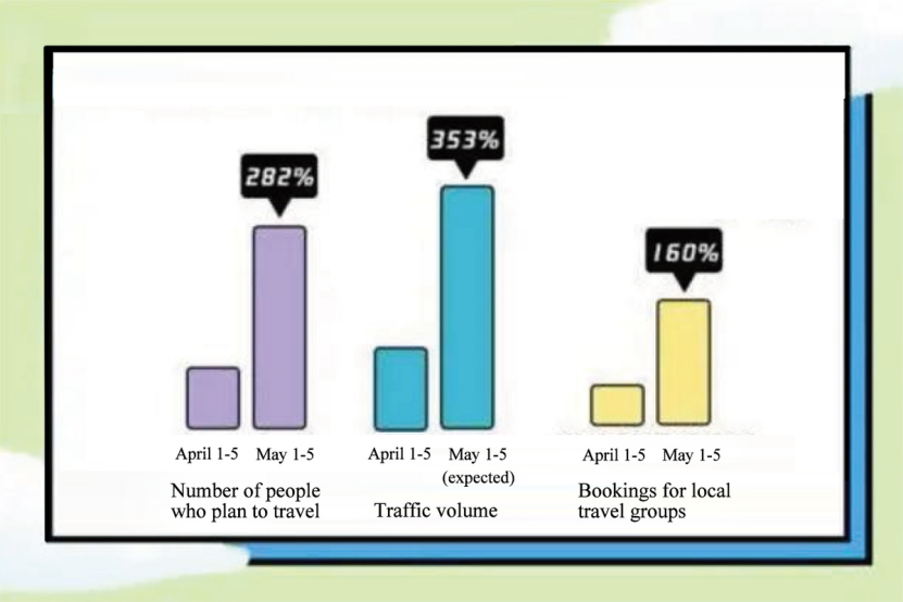 主要在线旅游平台携程网的统计数据显示,即将到来的5月1日至5日假期,预计客流量将比4月同期激增353%。