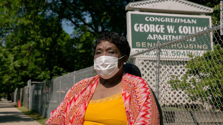 75岁的戴维塔·布鲁克斯很害怕,她患有心力衰竭、髋部骨折和黄斑变性。她说,她在芝加哥西区附近的低收入老年公寓—国会议员乔治·W·柯林斯公寓的条件“很糟糕”。