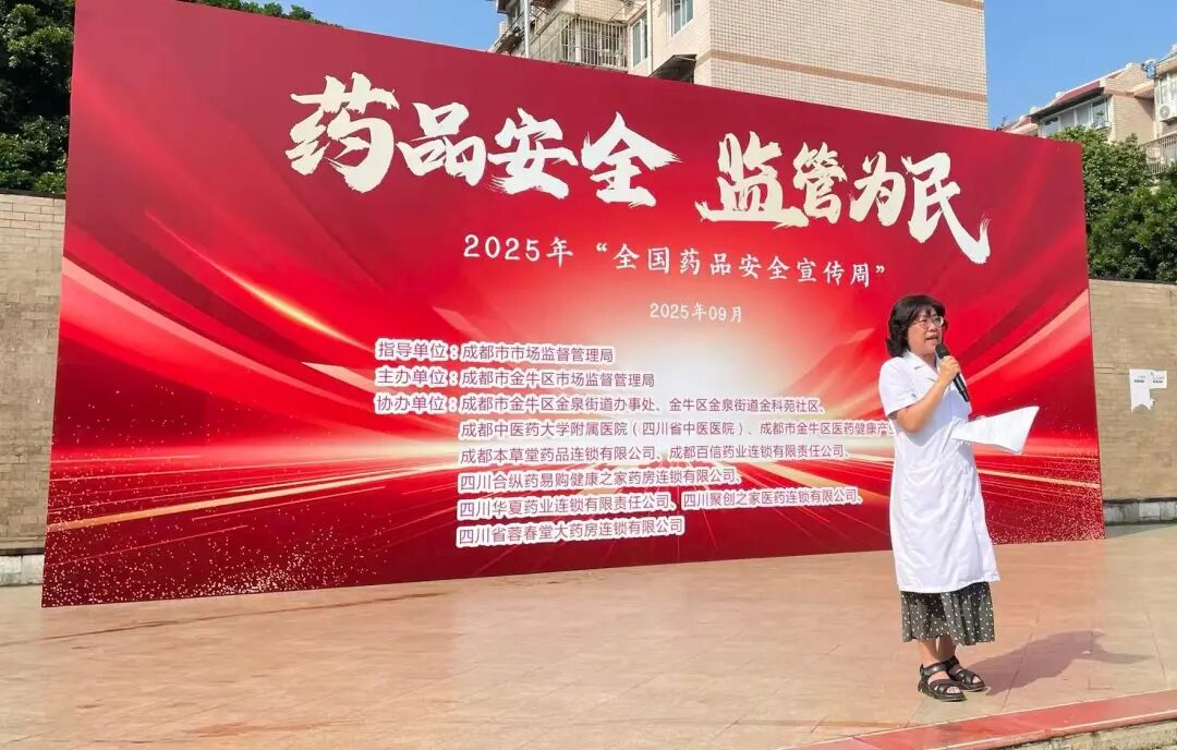 9月9日,我院联合成都市金牛区市场监督管理局在金泉街道金科苑社区举办2025年“全国药品安全宣传周”活动。此次活动以“药品安全 监管为民”为主题,旨在落实国家药监局关于药品安全工作的相关要求,切实提升社区居民的安全用药意识。