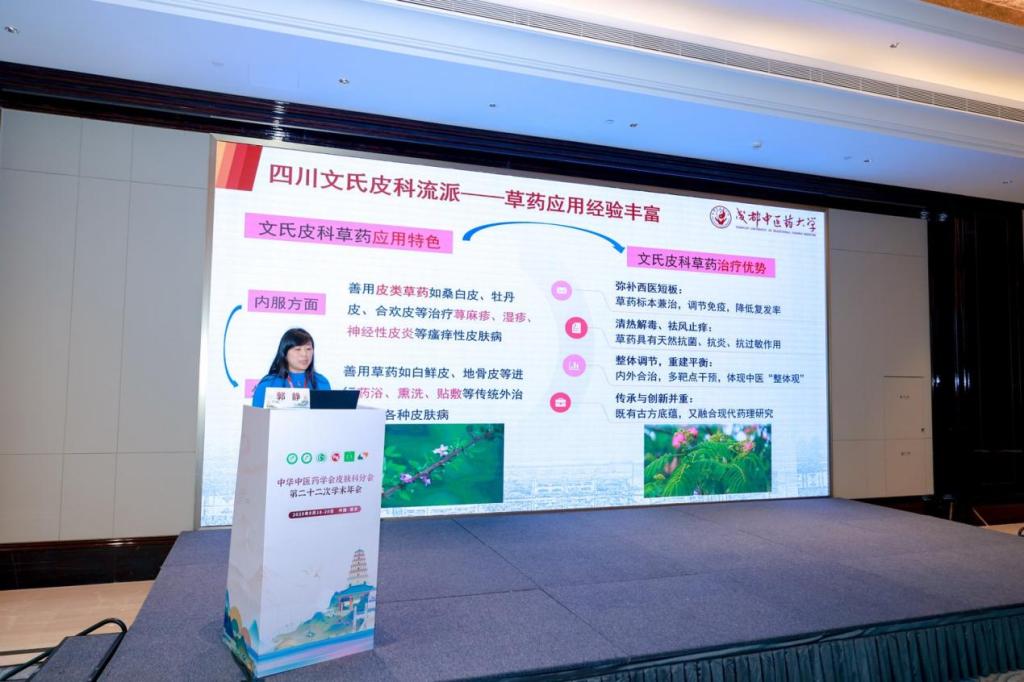 图4 郭静教授作《全国名中医艾儒棣教授草药在皮肤病中的应用》专题讲座