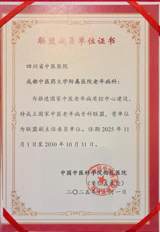 我院老年病科加入国家中医老年病专科联盟,既是机遇,又是挑战,我院将以此为契机,积极参与国家中医老年病专科建设与学术协作,持续深化老年病中医药防治研究,加强人才培养与临床实践融合,为助力构建覆盖全生命周期的老年健康服务体系贡献力量。