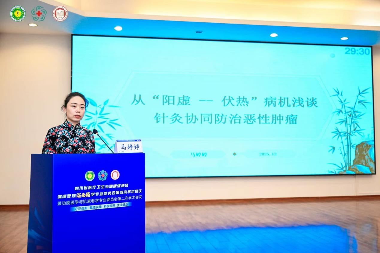 学术交流环节,我院四川省名中医吴节,林冰、马婷婷分别以《从“通、调、补”三法谈治未病体重管理》《辩体-辨病-辩证模式在防治恶性肿瘤中的应用》《从“阳虚-伏热”病机浅谈针灸协同防治恶性肿瘤》为题做学术分享。