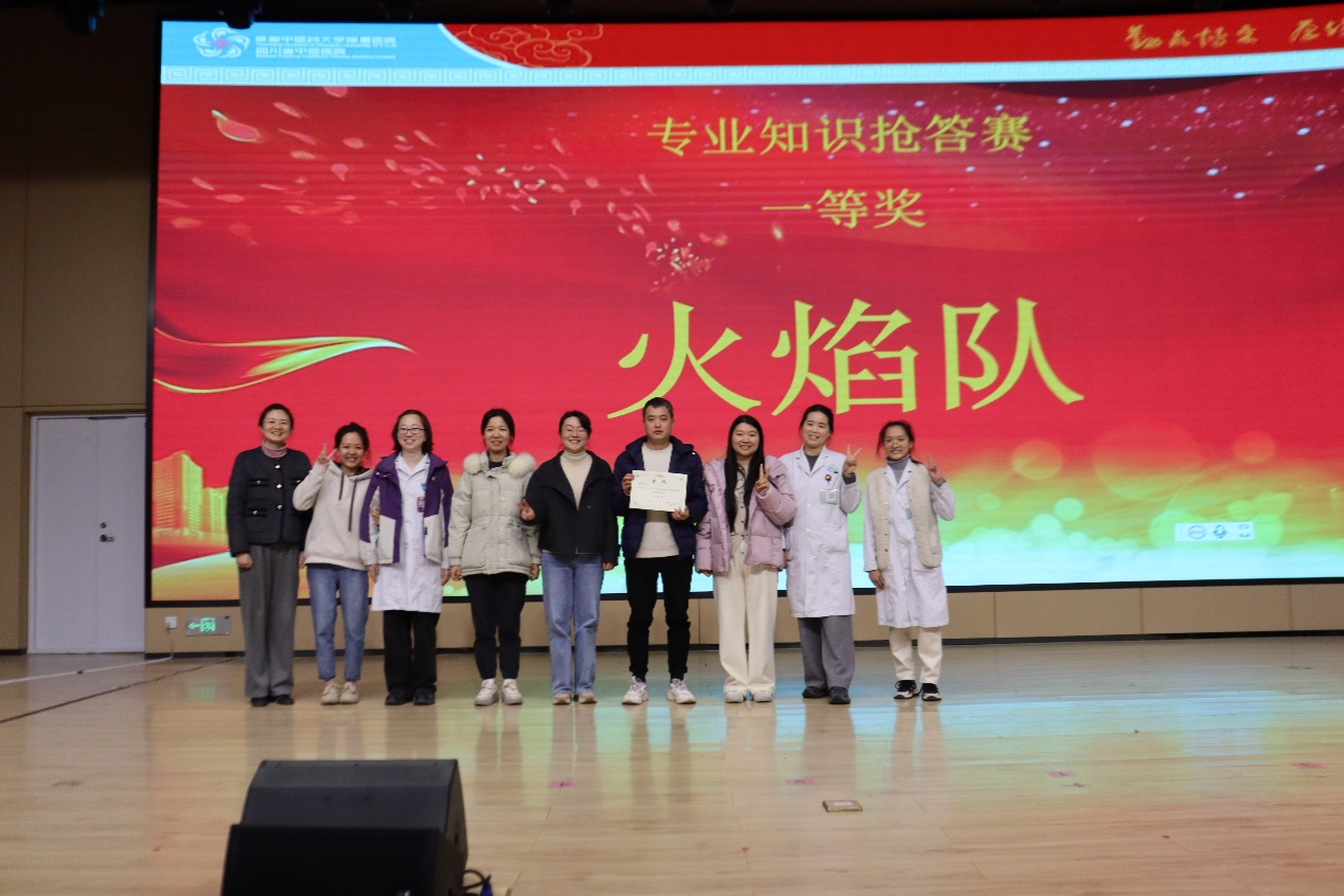 随后进行的“药学专业知识抢答赛”创新采用“跨专业组队”形式,8支队伍均由中药、西药、制剂等不同岗位人员混合编成,旨在促进学科交融与团队协作。题目涵盖中药、西药、方剂、药事管理、处方审核、不良反应处理及制剂法规等多元内容,共设60题,考验选手的知识储备与临场反应。现场抢答激烈、思维碰撞,展现出药学人员扎实的专业功底与昂扬的竞赛风采。最终,“火焰队”凭借出色发挥与默契配合,荣获一等奖。