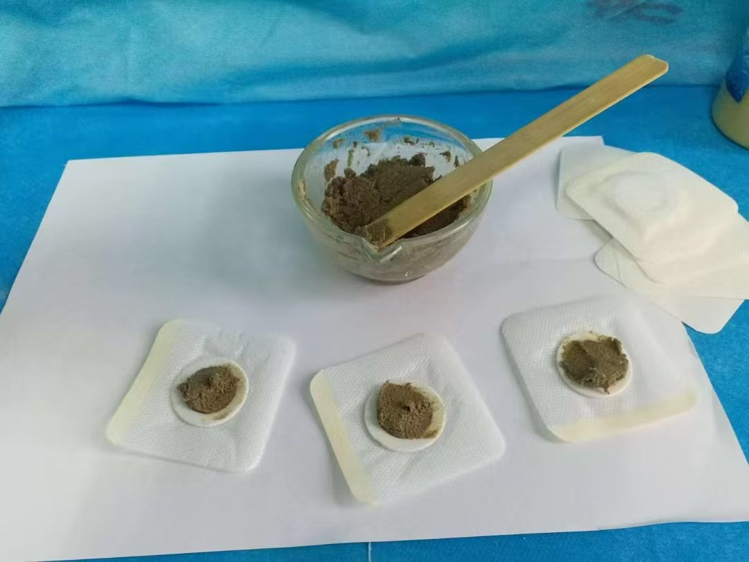 穴位贴敷技术:是将药物制成一定剂型,敷贴到人体穴位,通过刺激穴位,激发经气,达到通经活络、清热解毒、活血化瘀、消肿止痛、行气消痞、扶正强身等作用的一种操作方法。其中根据中国传统医学“冬病夏治,夏病冬防”和“春夏养阳,秋冬养阴”理论指导下,开展了两种特色外治疗法——三九贴和三伏贴